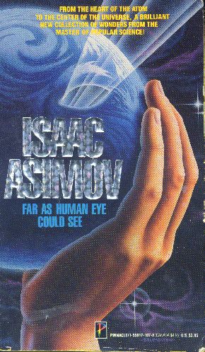 The author of over 350 books, Isaac Asimov is the undisputed dean of popular science. In this, his 23rd published collection of esays, the good doctor transports the reader through an awesome universe of discovery that stretches fromt he Earth’s core to the farthest reaches of outer space. Exploring the magic of magnetism and electricity, unlocking the mysteries of the blood and the secrets of the stars, FAR AS HUMAN EYE COULD SEE is a captivating scientific smorgasbord—enlightening, entertaining, and sparkling with the wit, charm and intelligence that is uniquely Asimov’s. A rare delight for all, from the uninitiated novice to the serious student…and anyone who falls in between.